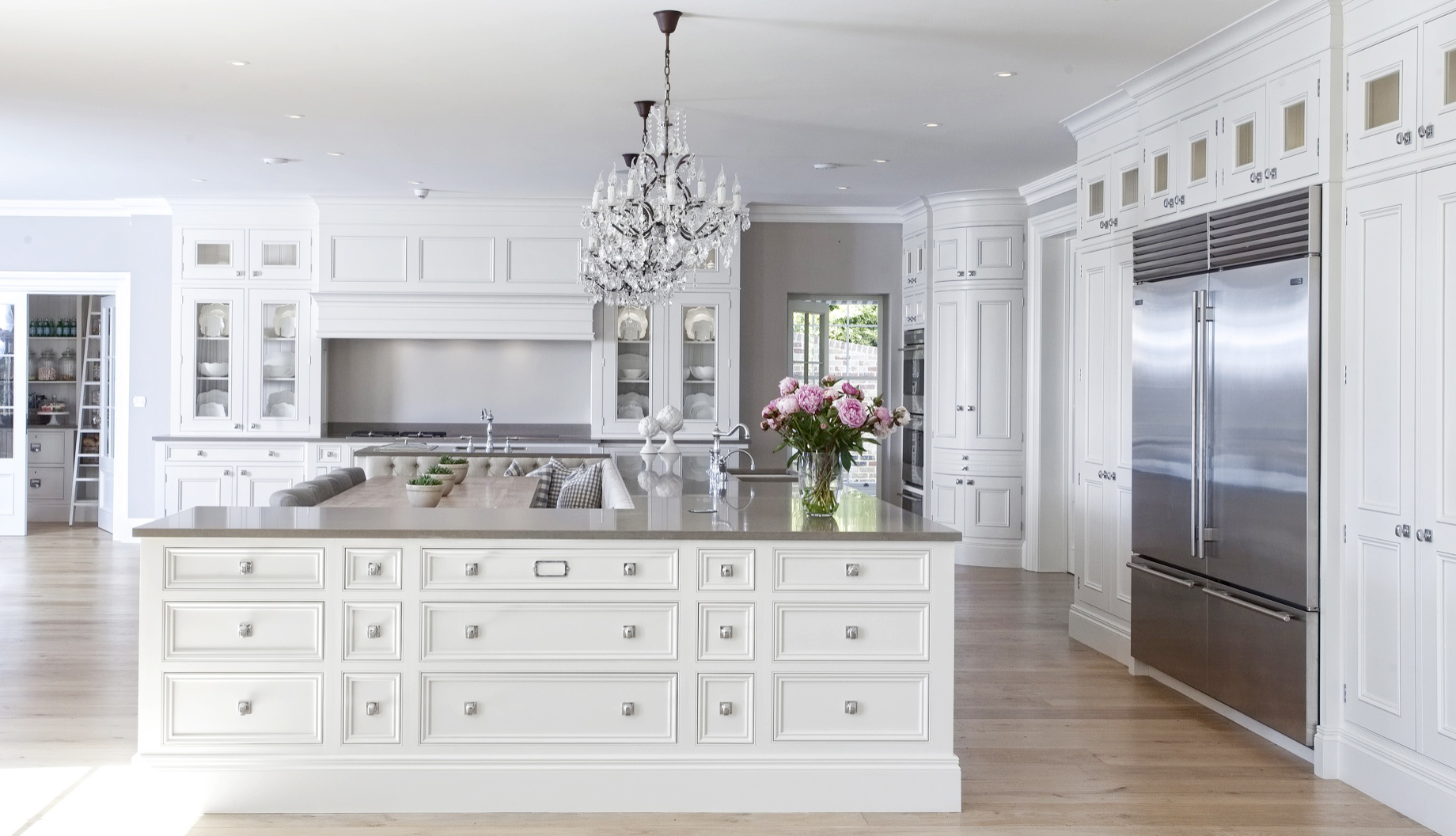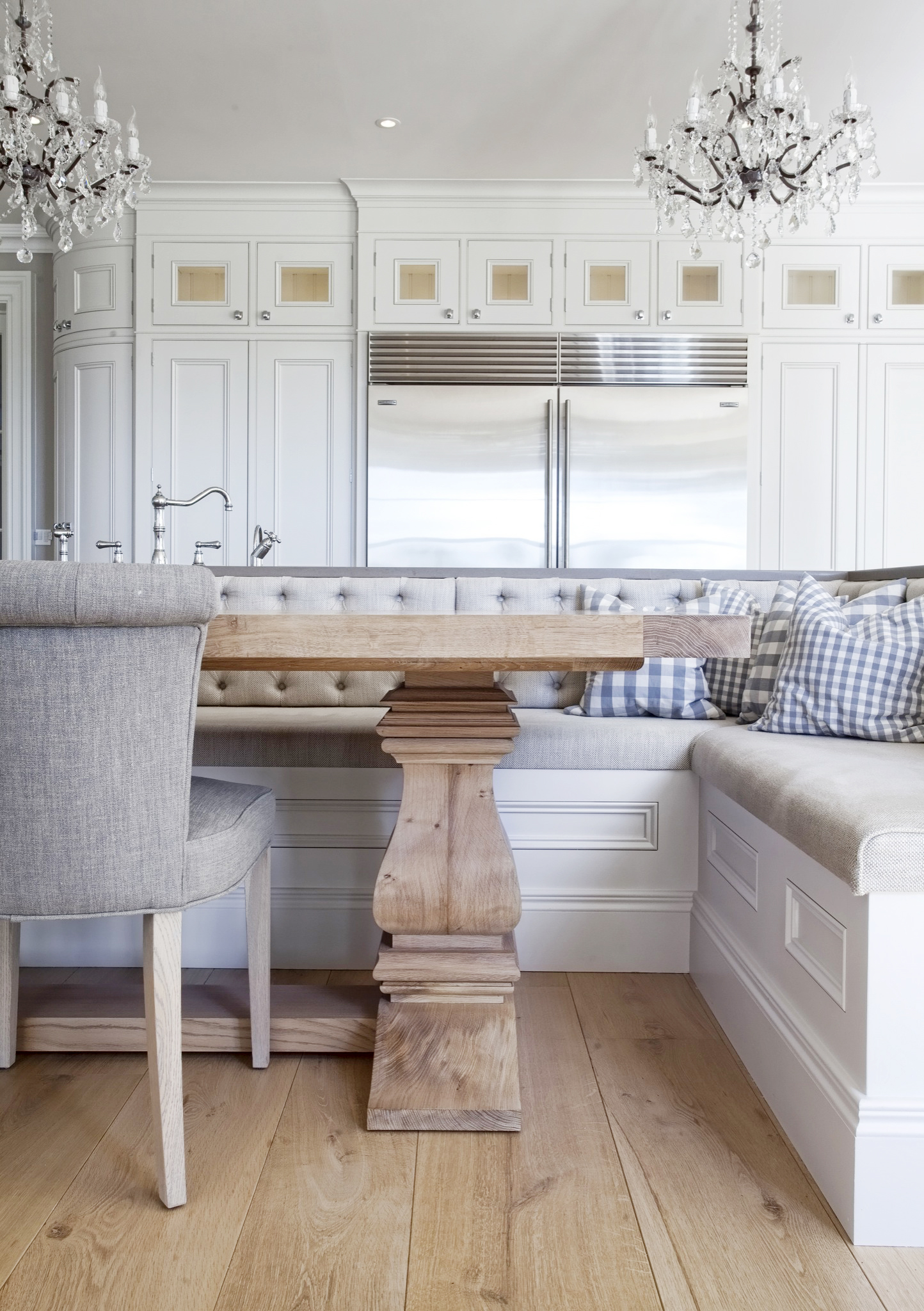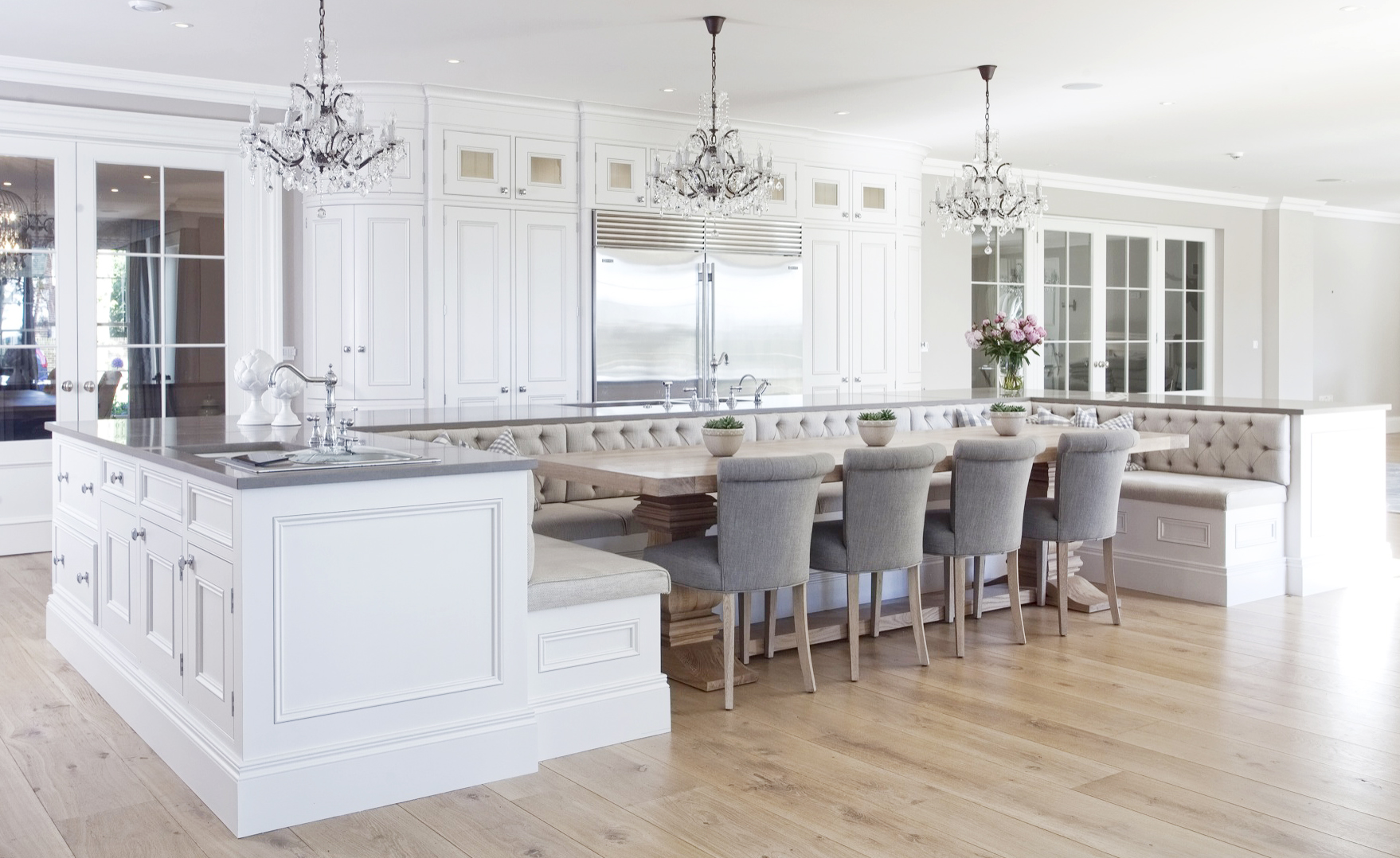 This has, (let me say that with more emphasis – HAS) to be my all time favorite kitchen (cough cough, future kitchen). I know I say that about most of the homes I blog about, but this is me to a T, I love everything about this kitchen, the island that is also a part of the bench seating (so San Francisco), the big magnificent table, and can we take a moment to notice the three chandeliers. That’s right not one, not two, (oh no, that’s child play), three chandeliers. Take all the time you need to drool over this room and to imagine what the rest of the home must look like to keep up with the admirable kitchen.