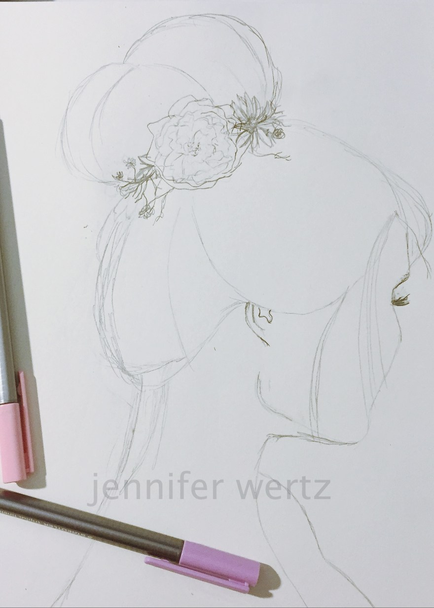 The Sketch part is always difficult for me, I’m a perfectionist and I hate using pencils so I never really truly like my sketches in the beginning. There’s no dimension, no color and I do not really show the details in the sketch. For me it is really just an idea of where shading and highlights are, and the outline of the picture itself. Sketching can take me anywhere from 30 min to a few hours; this particular piece took about an hour and a half.